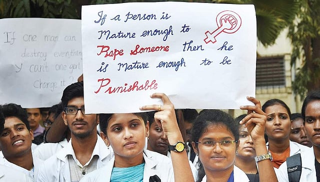 Over 800 medical students including postgraduates and undergraduates at Government Stanley Medical College Hospital staged a demonstration at the college campus on Thursday, condemning the sexual abuse and blackmail. They held aloft banners that read ‘don’t rape’, ‘stop sexual harassment,’ and ‘You can’t see height if you sit, so get up and come, girl’.