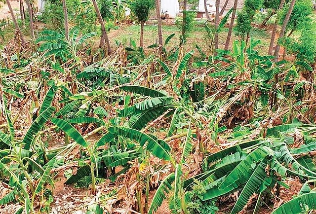 The wind had lasted for more than an hour, snapping overhead cables, damaging ceilings of houses and compound walls. In Ambur, over 300 plantains that were awaiting harvest in one-and-half months were destroyed in the wind. “The trees were planted in a one-acre land. There is no way we can recover the plants as they were cut in the middle and fell over,” said S Vishnu, the land owner’ son.