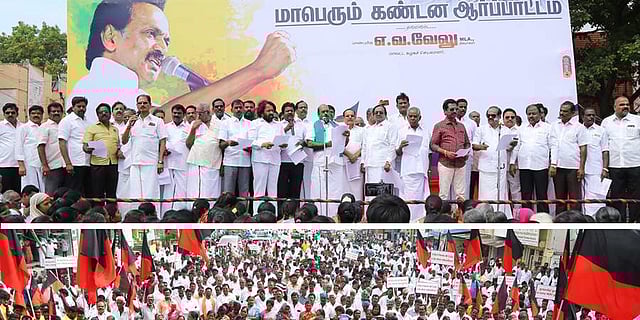 DMK MLAs MP Giri, K Pitchandi, KV Sekaran and Tiruvannamalai South district secretary R Sivanandam also addressed the demonstration.