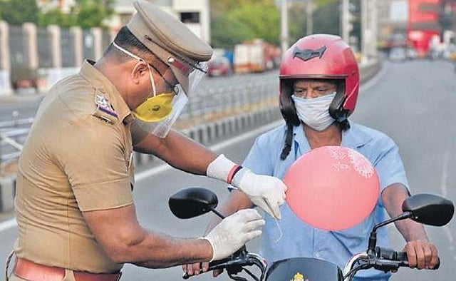 Violator given a balloon at Wallajah in Chennai | R Satish Babu