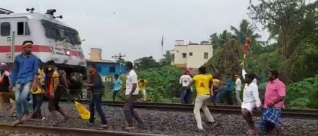 Video footage emerging from the site revealed that about 30 persons picketed the railway track holding PMK flags, pelted stones and track ballast at the approaching train -- the Kollam-Chennai Egmore Ananthapuri Express.