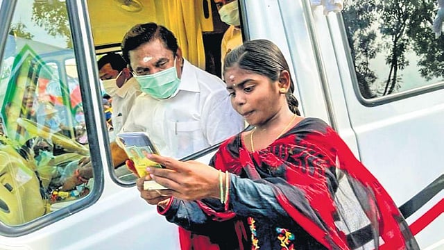 C Barani (12) of Kothampatti, was on cloud nine after she managed to take a selfie with the Chief Minister. Recalling the moments, she said, “We were waiting for a long time to catch a glimpse of the Chief Minister. When the vehicle came close, I tried to move forward and take a selfie. The Chief Minister noticed it, called me closer and posed for a picture.”