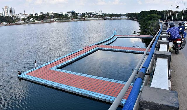 With restoration and rejuvenation works at Valankulam lake currently underway under the Smart Cities Mission, the new addition has instantly become the main attraction. Motorists were seen making a quick stop just to click pictures of the floating deck.