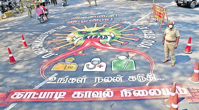 “It’s interesting to study the different forms in which the virus is drawn,” says Umadevi, an assistant professor at the University of Delhi. “Various forms of representation of the virus are a product of people’s imagination. In parts of Tamil Nadu, you can notice it being customised.” The virus taking the form of Yama — the god of death — accompanied by his assistant Chitragupta was the popular theme.