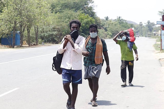 R Chellaiah, 41, A Sivalingam, 24, and K Alagappan, 26, hailing from Periakottai near Karaikudi, began trudging towards their homes on April 22 from Shamshabad where they were hired for creating stone sculptures.