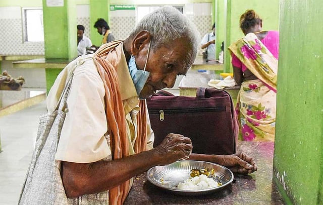 “For the past three years, I have been living on streets in Srirangam. Devotees used to give me food or money. But due to lockdown, the movement of people reduced and I ran out of money. Amma canteen helped me pull through the hardship,” said Ambiswamy, a destitute.
