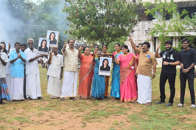The Sunday morning in the village was rocked by the sound of bursting crackers. "We have no words to describe our feelings", says an excited J Sudhakar, the ''Naattamai" (traditional head) of the village and the President of the Mannargudi Green city rotary club. Sweets were also distributed to the public in the village. Some of the villagers also held placards with the photo of Kamala Harris.