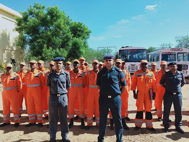 An NDRF team getting ready to move out from the unit office in Arakkonam