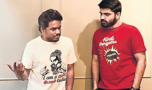 CHENNAI: Language activism in Tamil Nadu took the garb of T-shirts on Sunday after musician Yuvan Sankar Raja and actor Shirish Saravanan released a photo of them wearing designer T-shirts with slogans I am a Tamil pesum Indian (I am a Tamil speaking Indian) and Hindi theriyathu poda (I don’t know Hindi, go man).