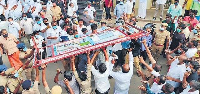 Upon hearing of the raid, hundreds of cadre, along with all AIADMK MLAs from Coimbatore district, gathered at Sugunapuram on Tuesday morning. They staged a sit-in-protest in front of Velumani’s house and raised slogans, alleging the raids were conducted by the State government due to political vendetta. City Police Commissioner Deepak M Damor and other officials camped at Sugunapuram to monitor the situation.