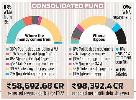 The revised Budget, with its higher estimated shortfall in revenue receipts, now expects the net public debt this year to end at Rs 98,392.4 crore. As mentioned already, this increase in debt is being driven primarily by the higher shortfall now estimated in revenue receipts — both in terms of tax and non-tax revenues and in the state’s share of the Central taxes.