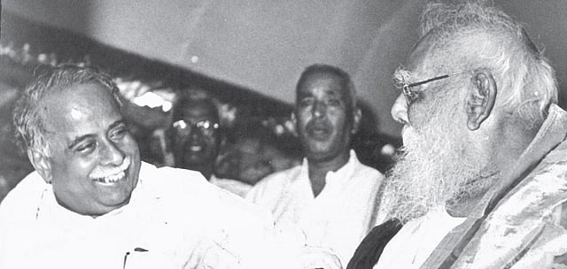 In the next few months, it appeared that the strain in Periyar and Anna’s relationship had ended, as Anna took part in an anti-Hindi-imposition conference of the DK in Erode in 1948. But Periyar’s decision to marry Maniyammai was the breaking point, and in 1949, Anna formed the DMK, and subsequently in 1956, the party entered electoral politics despite Periyar’s avowed stance against this.
