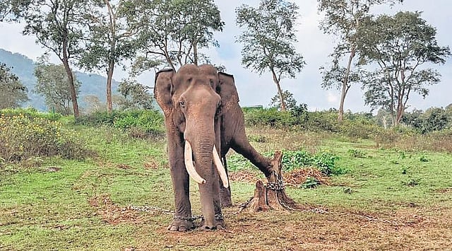 A forest department official told TNIE, “During the initial days of treatment, the animal was aggressive as he was blind. He refused to allow the veterinarian to provide him treatment. We started the treatment by keeping another Kumki nearby for safety.