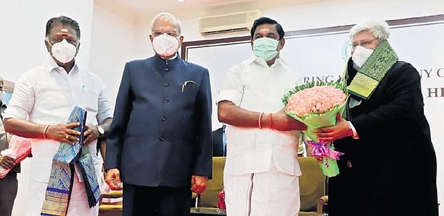 Governor Banwarilal Purohit administered the oath at Raj Bhavan, in the presence of Chief Minister Edappadi K Palaniswami and Deputy CM O Panneerselvam.