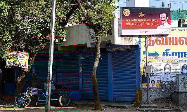 A shop owner who changed the backlit board in his shop on Thanjavur road in Tiruchy said, "I was contacted by local DMK members last week. They asked if I was interested to change the name board of my shop into a DMK banner with my shop name under it. After I gave my consent, they replaced my old name board with a new slogan and name of my shop."
