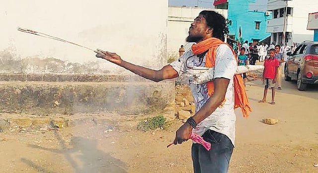 “On Saturday alone, I burst crackers at about 25 villages in Perambalur district. When clients buy fireworks from our unit, they hire me to burst them. There are at least 10 youngsters in the villages around Lalgudi who burst crackers for a living,” Kathiravan says, adding that he’s been doing this for the past 10 years, and gets Rs 500 a day, besides a free meal.