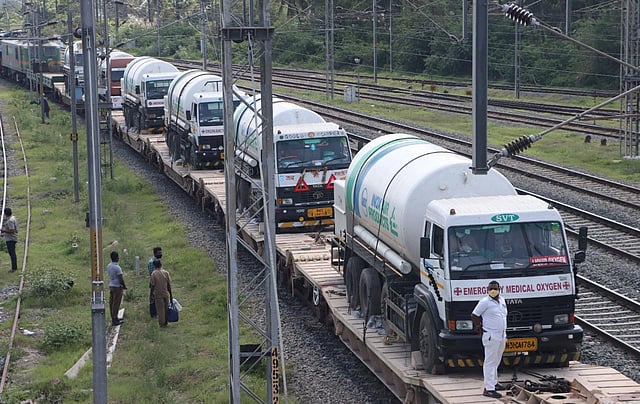 THIRUVANANTHAPURAM: The Southern Railway has delivered 2114.21 Metric Tonnes of Liquid Medical Oxygen (LMO) to Tamil Nadu and Keralathrough 32 ''Oxygen Express'' trains to help these states tide over the difficulties in supply during the second wave of the pandemic.