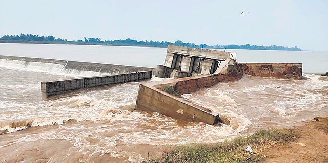 VILLUPURAM: After the sluices of the Thalavanur check dam in Villupuram collapsed on Tuesday, within a year of its inauguration, the district’s farmers have raised questions about the quality of the dam’s construction. The right-side sluice of the dam collapsed early on Tuesday, following heavy rains. The public has been warned against approaching the banks of the river.