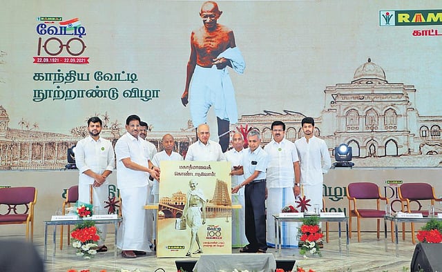 TIRUPPUR: Ramraj Cotton on Wednesday celebrated the centennial year of Mahatma Gandhi changing his attire to the dhoti, with an event titled Gandhiya Dhoti Centennial Celebration, or Dhoti 100. MD of Ramraj Cotton KR Nagarajan inaugurated the event.
