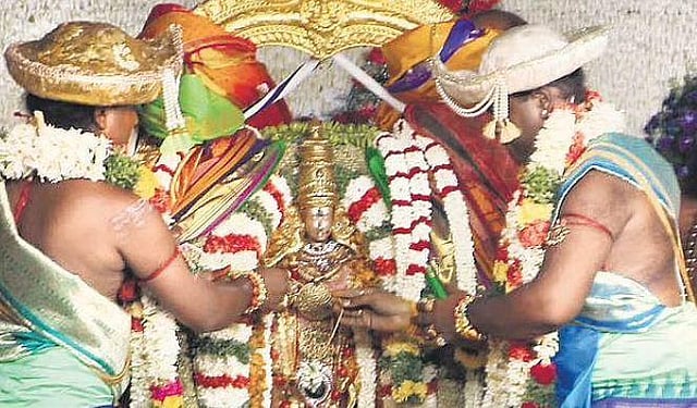 Following the customary poojas and rituals, the wedding began around 10.50 am with priests chanting hymns. Following this, the married women changed their mangalsutra, and later, devotees were allowed to have darshan at the Thirukalyana Mandapam.