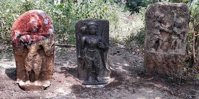 Speaking to TNIE, Team Director of the Centre S Ravi Kumar said, "We got information that a hero stone was found near the compound wall of Manneswarar Siva temple in Annur town in Coimbatore. To our surprise, we also found another hero stone along the bank of the temple tank and a third hero stone was found inside the temple tank.