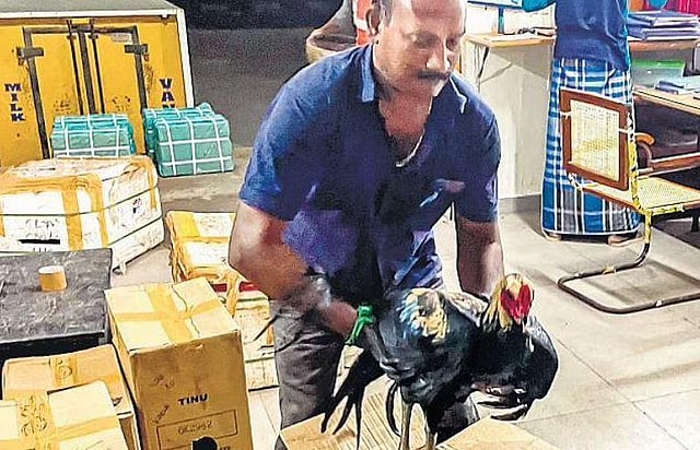 The roosters are sent by parcel from Karur to Andhra Pradesh via Chennai
