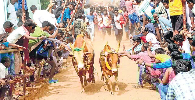 A revenue official said around 30 bulls participated in the event. People from nearby villages also came to watch the race at which COVID norms were violated.