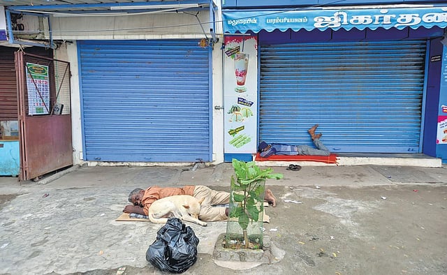 TIRUCHY: With most small eateries and tea stalls remaining closed on Sunday, many destitutes were found waiting near the railway junction, Srirangam, and other transport locations for good samaritans to get some food. Though a few of them got food from some kind-hearted people, many others took a nap on an empty stomach.
