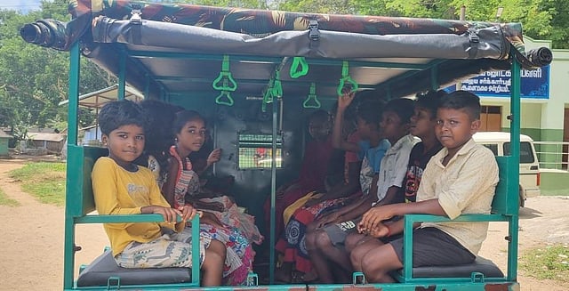 A day after TNIE highlighted how students were forced to drop out of school due to lack of transportation, forest department, with support from NGOs, has arranged a customized battery-operated vehicle for tribal students at Old Sarkarpathi in Anaimalai Tiger Reserve Forest near Pollachi. The vehicle would be operated from June 13 to drop and pick up students from school and also transport tribals in the settlement during emergencies.