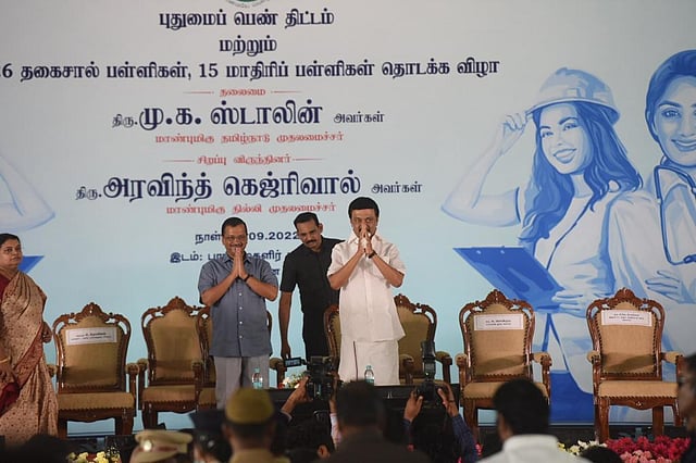 Joining Stalin at the event held at Bharathi Women’s College in Chennai, his Delhi counterpart Arvind Kejriwal launched 26 Schools of Excellence and 15 Model Schools. While Kejriwal lauded Stalin for emulating the Delhi school model within six months and for his other initiatives in education sector, Stalin praised the Delhi CM as a ‘fighter’. “Kejriwal quit the Indian Revenue Service and entered public life to serve people. With his hard work, he has become the CM of Delhi. Recently, he has made his party win in Punjab too. He is closely watched by everyone in the country,” the DMK leader said.