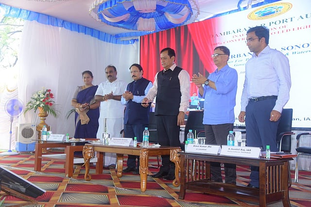 In the presence of VOC Port Chairman TK Ramachandra and Collector Dr K Senthil Raj, the union minister inaugurated the upgraded coal yard road and drainage system, renovated at a cost of Rs 16 crore, Fixed Fire Fighting System at Oil Jetty, established at a cost of Rs 18.79 crore, 22 KV HT Electrical Network that was strengthened at a cost of Rs 1.15 crore, Optic Fibre connectivity worth Rs 1.15 crore, and Ease of Doing Business projects, Drive through Container Scanner and 140 MT Electronic in-motion Weigh Bridge installed by spending Rs 46.51 crore and Vessel Traffic System developed at the cost of Rs 2.29 crore.