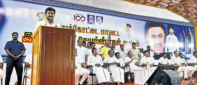 Law Minister S Regupathy mentioned `1 crore was given as funds for the upcoming conference on behalf of the Pudukkkottai wing of the DMK. Ministers Siva V Meyyanathan and Anbil Mahesh were also present for the event alongside prominent party members including DMK’s Pudukkottai North district secretary KK Chellapandiyan and Pudukkottai MLA V Muthuraja.