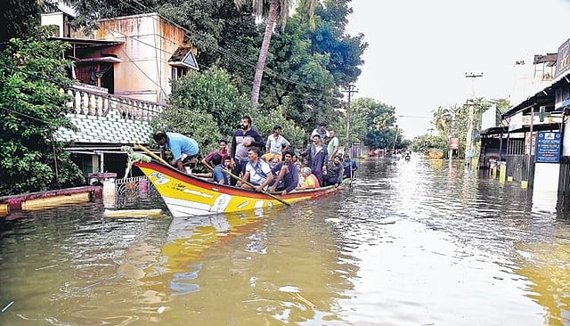 Residents of TANSI Nagar in Velachery were rescued by boats from noon on Tuesday. Part of the Velachery-Tambaram road was also flooded. In Madipakkam, Ram Nagar, LIC Nagar, Balaji Nagar and Kuberan Nagar were waterlogged. A 71-year-old dialysis patient was among those struggling to navigate their way through the inundated Ram Nagar stretch to reach the main road.
