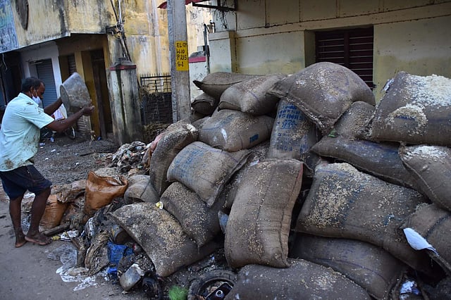 According to sources, the godown on Thoothukudi-Tirunelveli NH contained 32,000 tonnes of rice and wheat bags when water seeped in last Monday.