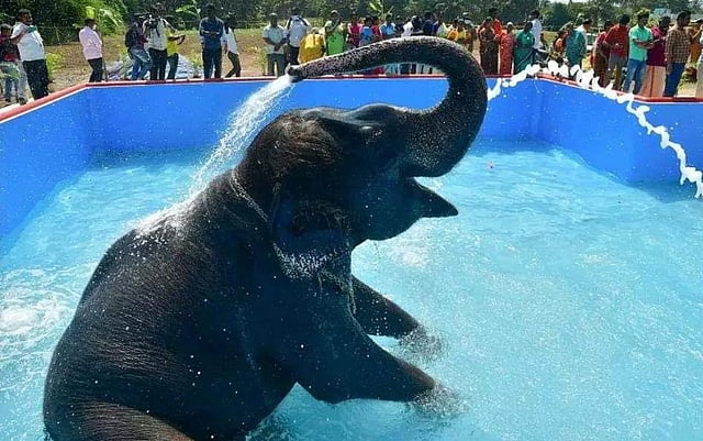 COIMBATORE: Minister for HR&CE department P K Sekar Babu on Tuesday inaugurated a swimming pool constructed for the Perur Patteeswarar temple elephant ‘Kalyani’ at a cost of Rs 50 lakh. He also dedicated a 300-metre-long walking track for the elephant on the temple premises.