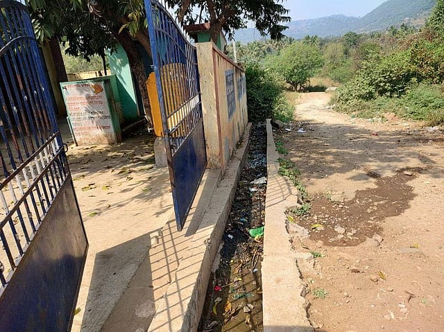 The PUPS in Aathur (Bedarahalli) has a strength of 27 students. A sewer channel was constructed in front of the school a month ago, but it has not been covered. Parents alleged that a few students had fallen into the sewer and suffered injuries.