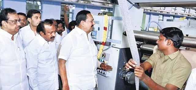 Gandhi later inaugurated a new stenter machine procured at the cost of Rs 1.53 crore at the Tamil Nadu Cooperative Textile Processing Mill in Erode.