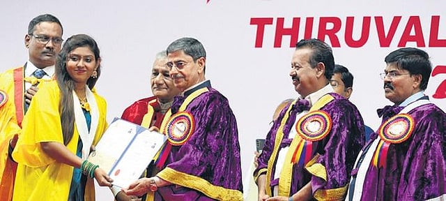 VELLORE: Thiruvalluvar University hosted its 17th convocation ceremony on Monday in which degrees were handed over to 1.1 lakh students, which included 142 master’s degrees, 45 degrees, 97,649 bachelor’s degrees, 14,447 master’s degrees and 428 MPhil graduates. The event was attended by Governor RN Ravi, Minister of State for Highways and civil aviation VK Singh and Higher Education Minister K Ponmudy