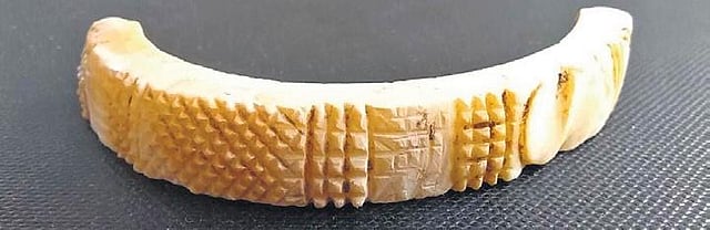 VIRUDHUNAGAR: A dice made of elephant ivory and a decorated shell bangle were unearthed during the phase 2 excavation at Vembakottai on Tuesday. The current phase of excavation commenced on April 6. Around six trenches were dug and nearly 900 artifacts, including copper coins, iron objects, weighing machines, and terracotta figurines have been unearthed so far.
