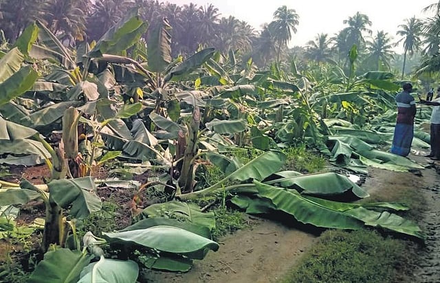 On Saturday, workers who arrived at the farm, found over 3,500 banana trees were destroyed. Following a complaint from Elango with Jedarpalayam police, Namakkal SP S Rajeshkannan arrived on the spot and conducted an investigation. The security was tightened around Jedarpalayam and efforts are underway to apprehend the suspects, said police.
