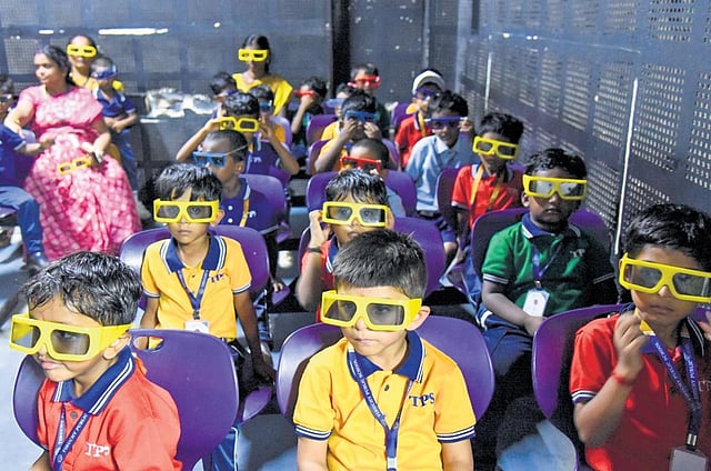 Installed at a cost of Rs 3 crore, the new facility has been attracting visitors from neighbouring districts as well. The centre was established in 1999 using the Japan-based photo-mechanical technology. The new France-based technology installed in a dome theatre was a novel experience for visitors, as several students from middle and high schools were found waiting in long queues when TNIE visited the centre on Friday. “It was a great experience,” said F Taufik, a Class 4 student who watched the show.