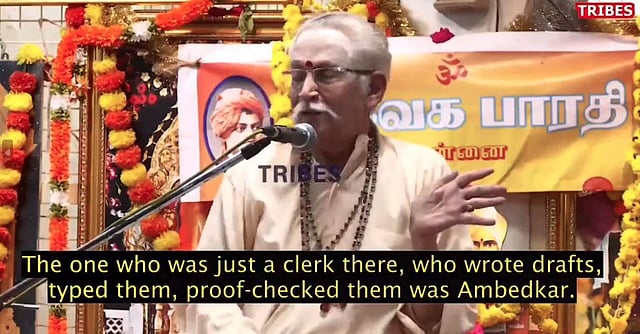 In a video that sparked a huge public outrage, the Hindutva leader was seen calling Dr BR Ambedkar a mere stenographer and that he had nothing to do with the 'constitution of India'. He was also seen making obscene comments on Thiruvalluvar.