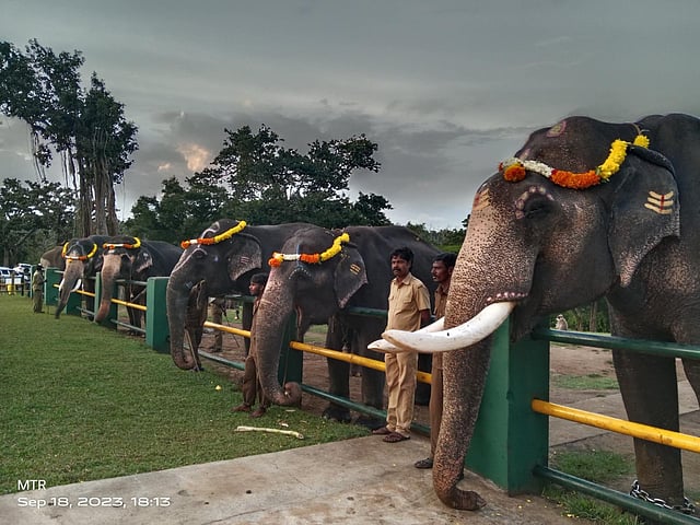 “Out of 28 elephants in MTR, 19 elephants are taken care of at Theppakkadu elephant camp under which 18 elephants took part in the Vinayakar Chaturthi celebration. Elephant Masini, who is isolated after killing his mahout four months ago did not take part in the celebration. The celebration was also held in Abhayaranyam camp where nine other elephants are taken care of. However, they were not lined up for tourists,” said a forest department official