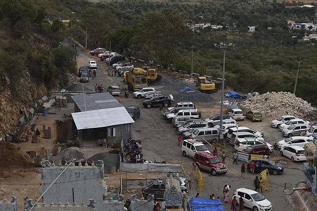 As per sources, the 1-acre parking lot of the temple can accommodate a maximum of 65 cars and around 100 bikes. But, currently, the works of constructing a lift, repairing the hill road, and laying stones around the temple are underway, due to which the space has shrunk.