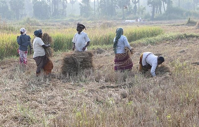 Farm workers reaping the last batches of paddy in a village near Nagapattinam. Express
