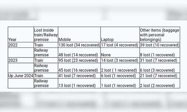 According to official data, of the 242 valuables reported missing in 2022 in the Tiruchy division, authorities recovered only 63 items, including mobile phones and laptops. Similarly, in 2023, of the 193 valuables reported lost, only 53 were recovered. This year, a total of 84 items were reported lost till June, of which only 19 were recovered. Sources indicate that this situation is common across most other railway divisions.