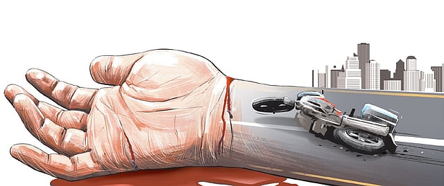 Manikandan was riding his bike through a poorly lit stretch near the construction side when he attempted to navigate a mound of dirt, losing control and falling into an adjacent pit. The pit contained exposed column rods which pierced his head, leading to instant death.