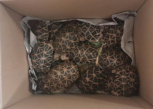 The Wildlife Crime Control Bureau (WCCB) officials were intimated who reached the spot and confirmed the seized animals as Indian star tortoises (Geochelone Elegans).