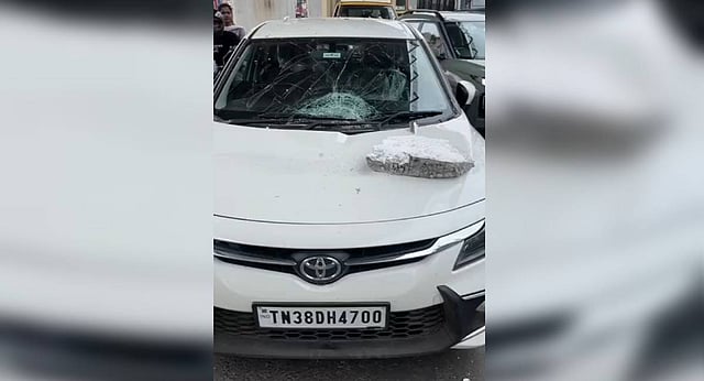 COIMBATORE: Two men who were driving a car had a lucky escape after a concrete block fell on the vehicle from the under construction Avinashi Road flyover near Hope College junction on Monday afternoon. Though no one was injured, motorists wonder if adequate safety measures are being taken in such project sites.