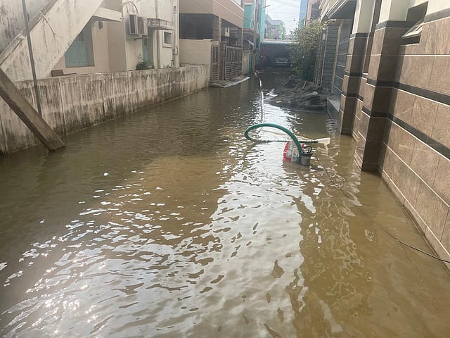 “The stormwater drain near the lake was originally a 40-foot-wide drain. However, over the past 20 to 25 years, as the lake remained dry, around 30 feet of it has been encroached upon and converted into a road leading to Mathi Nagar and Aruppu Medu. Only 10 feet of the drain remains functional, causing excess water to spill beyond its capacity. Although warnings were issued to residents about the potential overflow, the volume of water was more than expected. The issue will be resolved today,” the official added. When asked about residents of Gopalapuram having to use their own pumps to remove water, he explained, “There are only two pumps in each zone. The available pumps for this area are already deployed in flooded regions.”